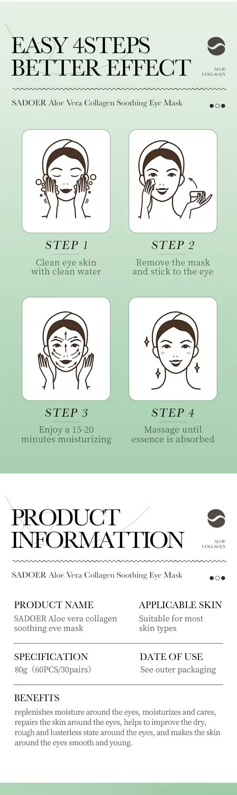 Aloe Vera Moisturizing Eye Mask โ Infused with algae & aloe to deeply hydrate and revitalize tired eyes ๐๐ง